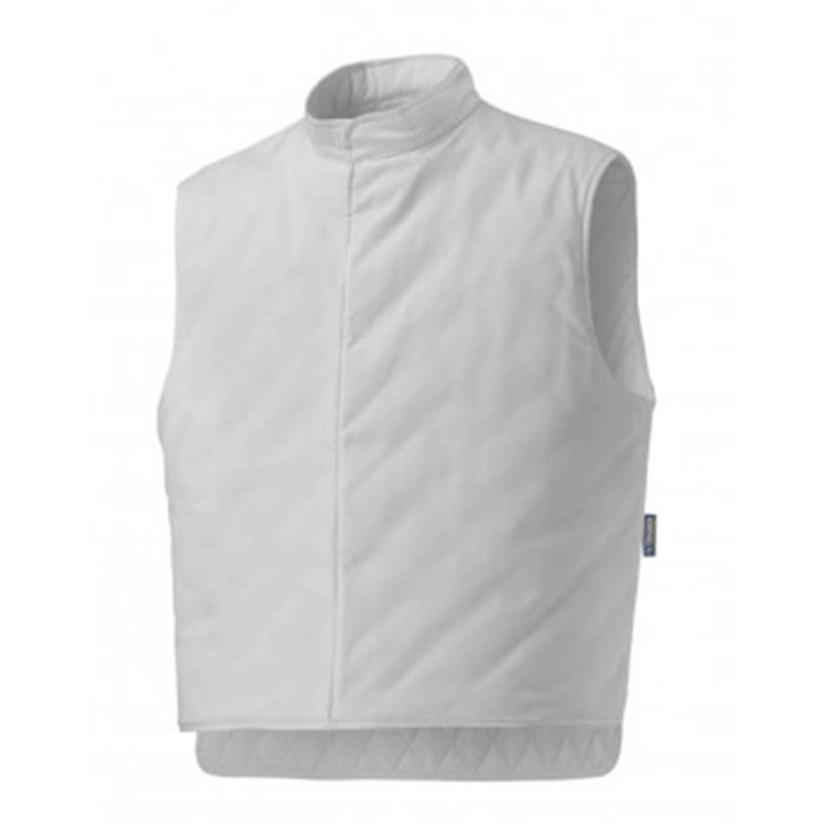 Gilet isotermico in poliestere 65% - cotone 35% (190 gr/m²) con imbottitura per basse temperature, superficie liscia con cuciture all?interno per facilitare le operazioni di pulizia e di igiene.