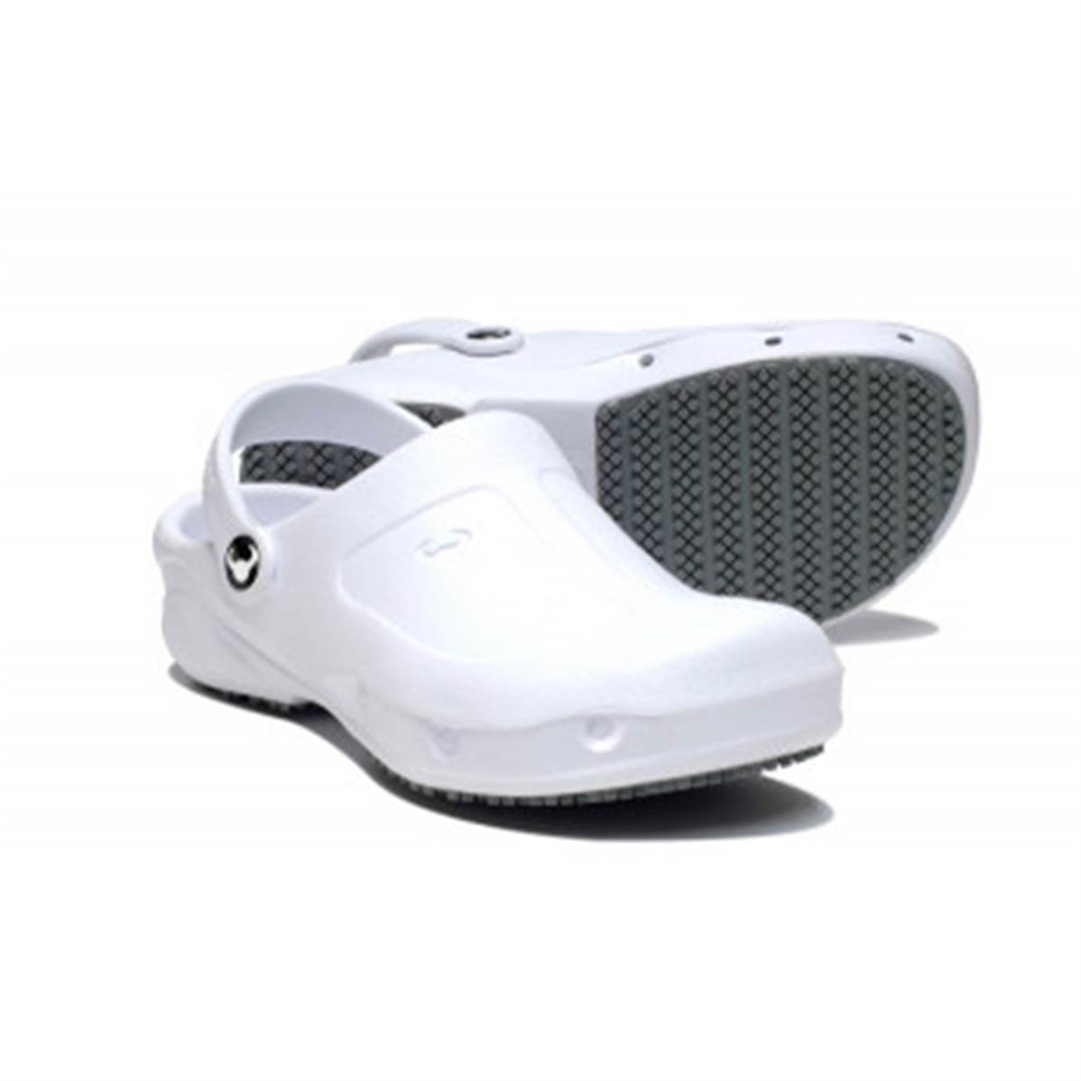 Zoccolo professionale estremamente leggero con suola antiscivolo certificata con il più alto coefficiente antiscivolo richiesto dalle normative. Costruito con materiale EVA X-CELL con trattamento antibatterico leggerissimo ma con elevata resistenza meccanica (peso medio dello zoccolo 225 grammi). Resistente ad oli, grassi, acidi, detergenti e idrocarburi. Dotato di cinturino e tallone rialzato per facilitare la calzata. certificato ISO 20347. Senza puntale per il massimo confort e massima leggerezza.