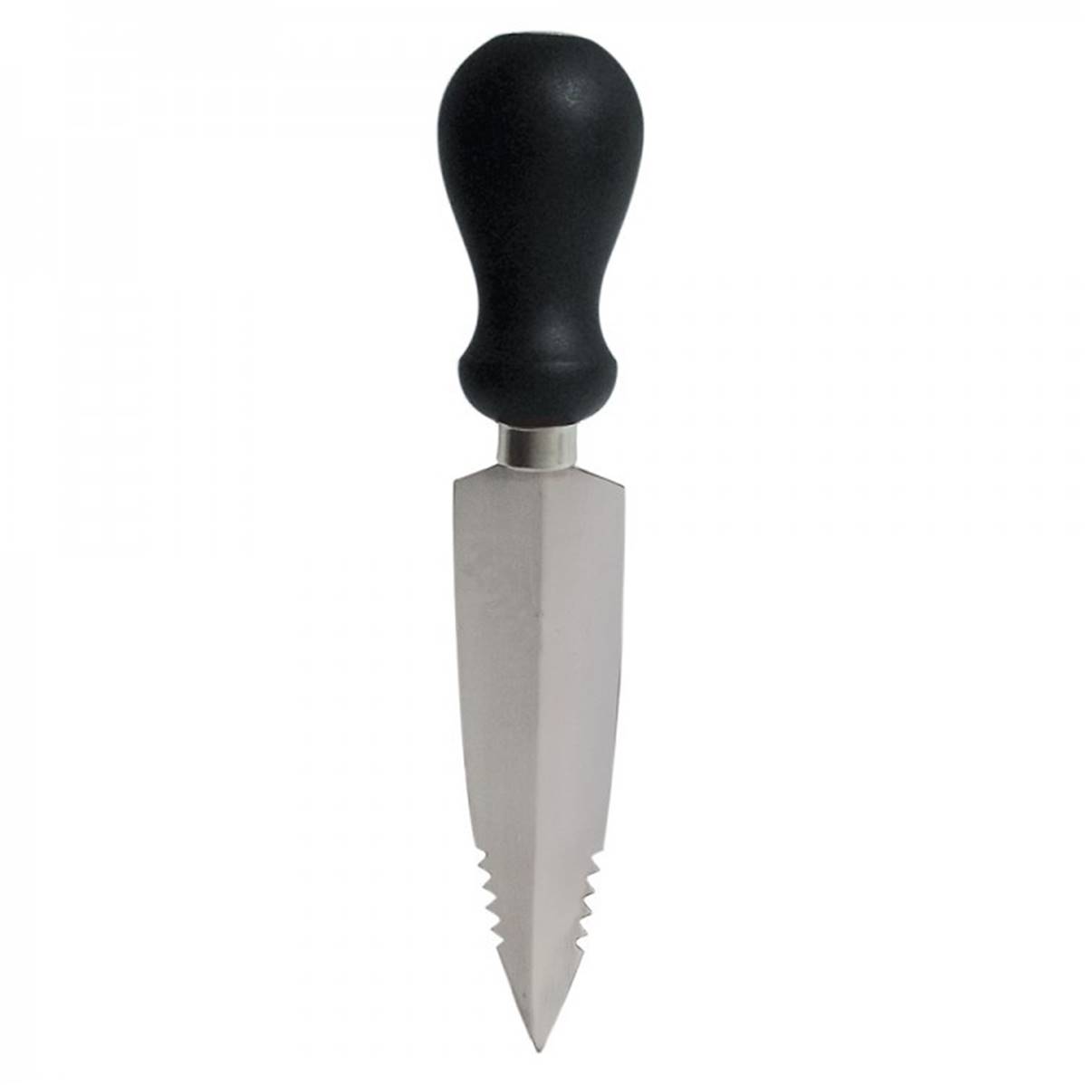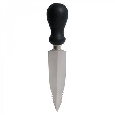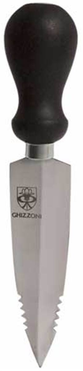 Si utilizza a tranciare il formaggio dopo aver tracciato il solco con il coltello a uncino. Il coltello ha sulla punta una doppia seghettatura su entrambi i lati che aiuta l'inserimento e il trancio del formaggio.
