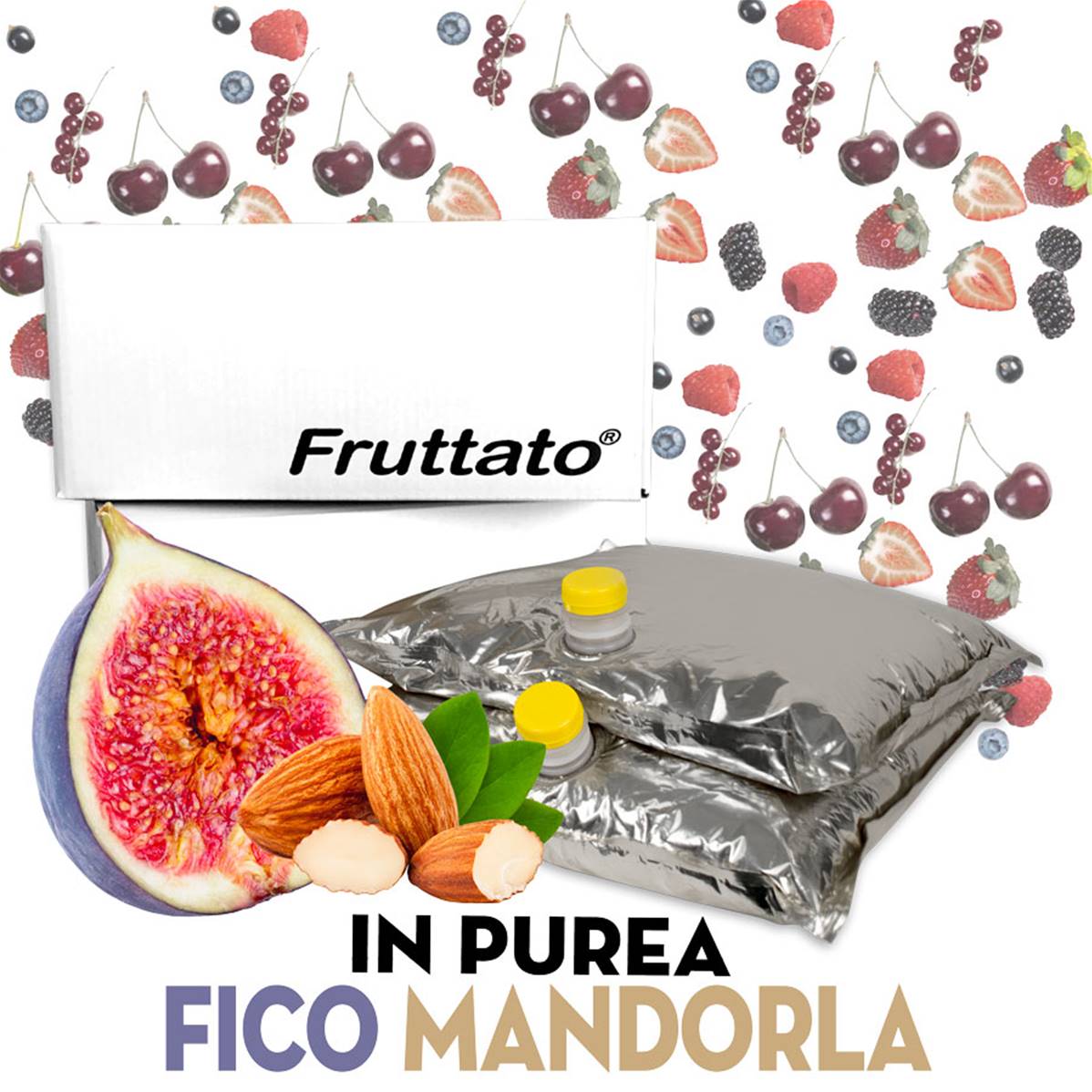 Gusto: Fico e Mandorla (Fichi e Mandorle) Formati: Standard 20 Kg (2 bag in box da 10 Kg) Shelf Life: 18 mesi