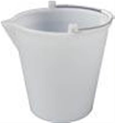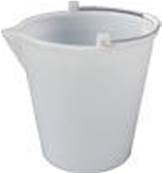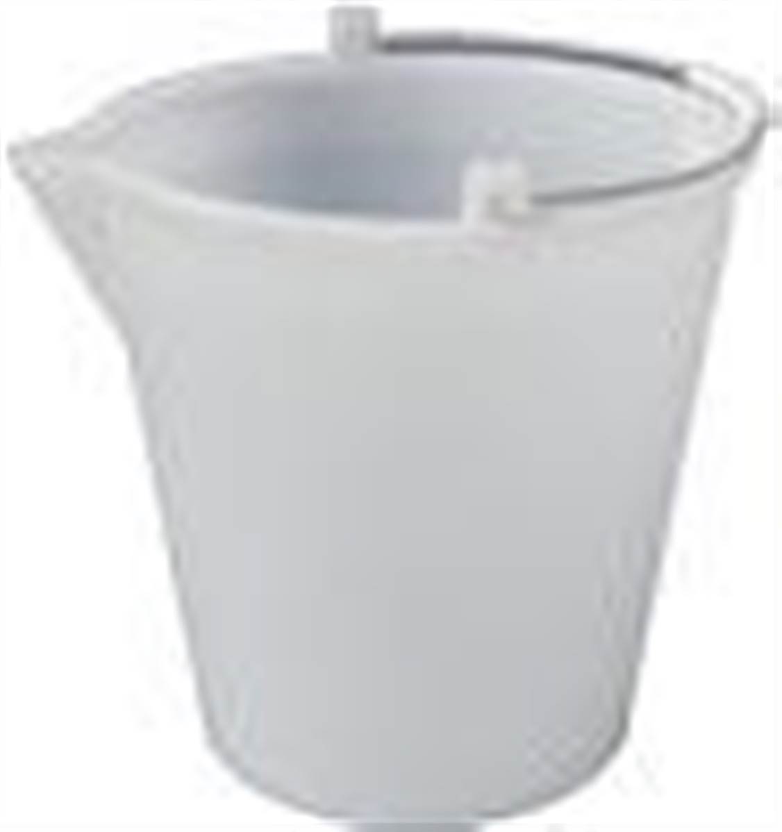 Secchio in plastica bianco con manico in metallo. Il secchio è graduato per una corretta misurazione delle quantità, inoltre ha un becco che lo rende particolarmente adatto a travasi.